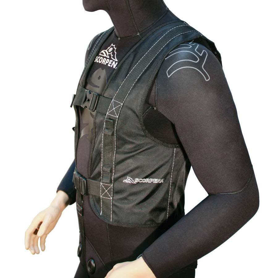 Позволяет охотнику распределить груз по телу равномерно, уменьшая нагрузку на поясницу и увеличивая стабильность положения тела в воде. Жилет из прочной ткани с плотными швами, вмещает в себя до 8 килограммовых грузовых пластин. Хорошее прилегание к телу обеспечивают брасовый ремень и регулируемые крепления на груди с пряжами фастекс.