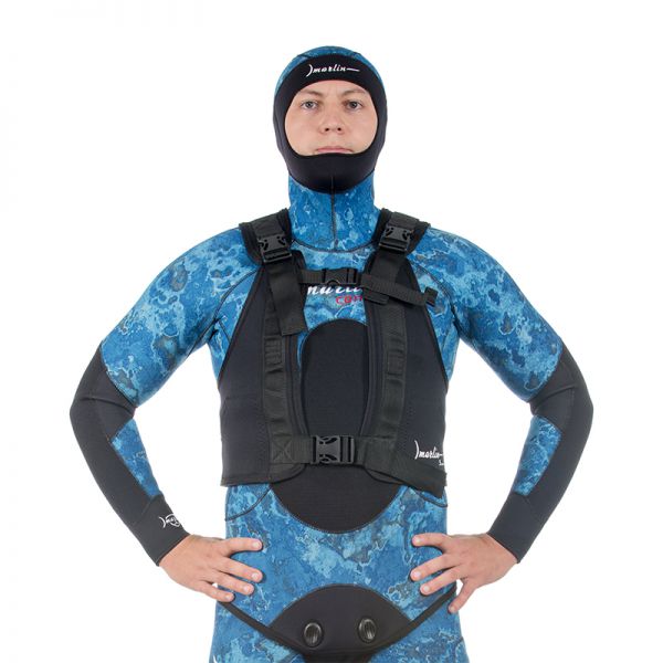 Жилет грузовой быстросъемный Marlin Balance изготовлен из компрессионного неопрена 3 мм - плотность данного вида неопрена снижает положительную плавучесть жилета и требует меньше грузов для отгрузки пловца. Шесть карманов на спине и два в передней части обеспечивают ныряльщику нужный баланс. С помощью ремней жилет легко и быстро подгоняется под индивидуальные размеры: рост и объем груди - такие регулировки придают жилету лучшее облегание и обтекаемую форму. При этом эластичный неопрен, из которого выполнен грузовой быстросъемный жилет Marlin Balance, позволит дышать полной грудью. В нижней части жилета расположен страховочный ремешок с петлей, через пах он фиксируется за язычок ремня или нижний фастекс жилета, что предотвращает произвольное скольжение жилета. Такая индивидуальная подгонка плюс анатомический крой обеспечивают комфортное пребывание охотника под водой.