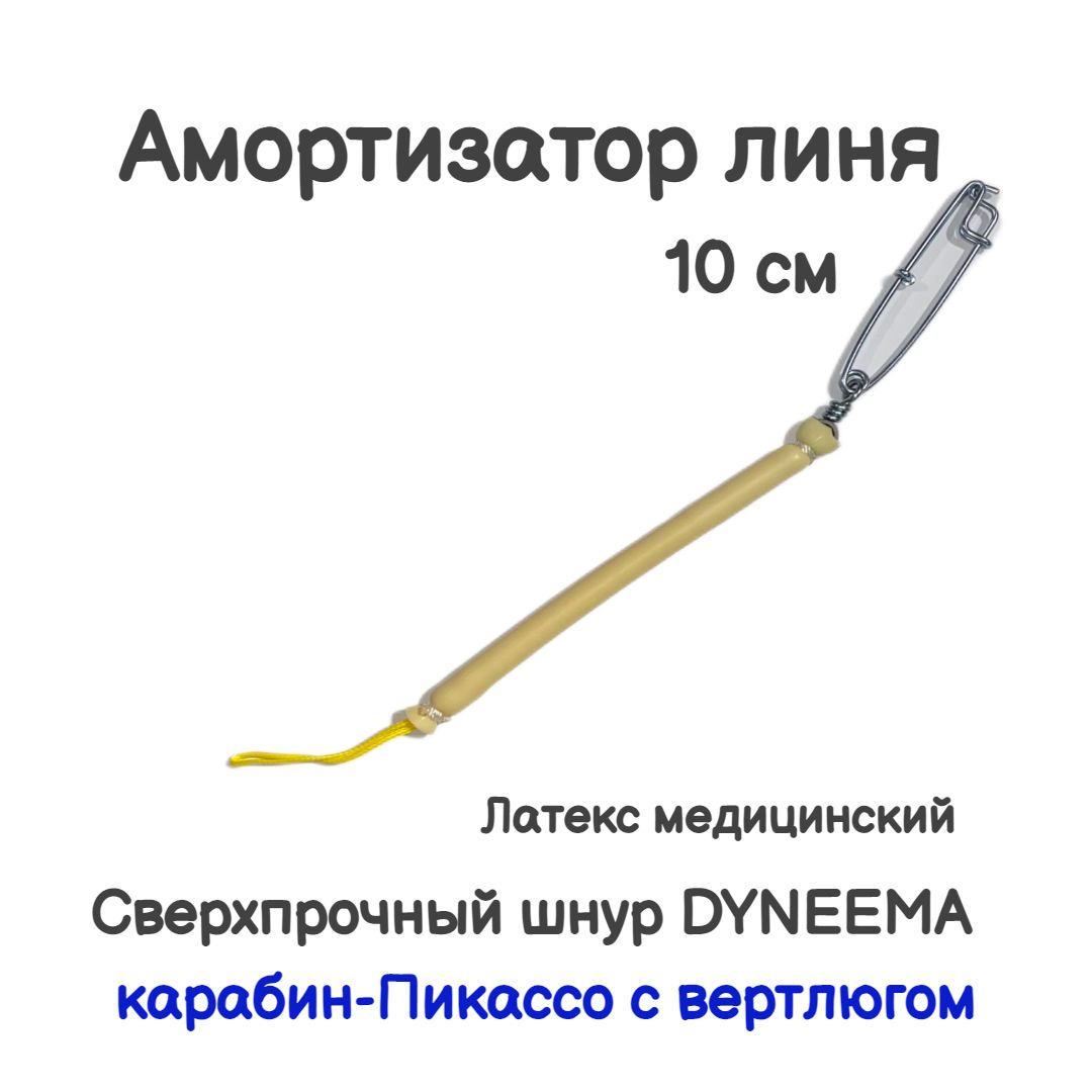 Амортизатор линя для подводных ружей а арбалетов с карабином Пикассо. Прочный и надежный амортизатор линя средней степени жесткости. При намотке линя на линесбрасыватель без использования катушки, у Вас всегда плотная, четкая намотка благодаря небольшому натяжению амортизатора на последнем витке. При использовании катушки тот же эффект. Нет надобности при каждом заряжании ослаблять тормоз, и подтягивать линь до плотной посадке на сбросе. Благодаря карабину, установленному на амортизатор, гарпун с рабочим линем всегда можно быстро отсоединить от ружья для: замены, выпутывания из коряг, пересадки добычи с гарпуна на кукан (актуально для модификаций с карабином). С использованием амортизатора линя, у рыбы на гарпуне гораздо меньше шансов сойти т.к. мягкая резина гасит жесткие рывки, не давая добыче опору.