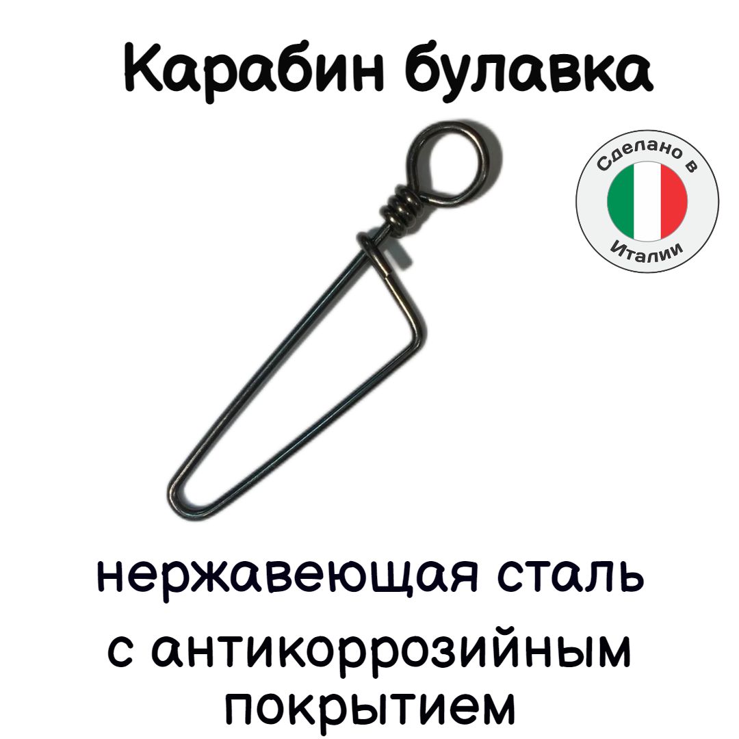 Классический карабин "булавка" из нержавеющей стали для подводной охоты. Данные карабины предназначены для крепления гарпун-линя к катушечному шнуру, для удобного и быстрого извлечения гарпуна из тела рыбы. Также применяется как быстросъемный крепеж различного оборудования к поясу, маркер-бую. Конструкция данного карабина прошла испытание временем. В течение десятилетий его используют подводные охотники всего мира в соленых и пресных водах.