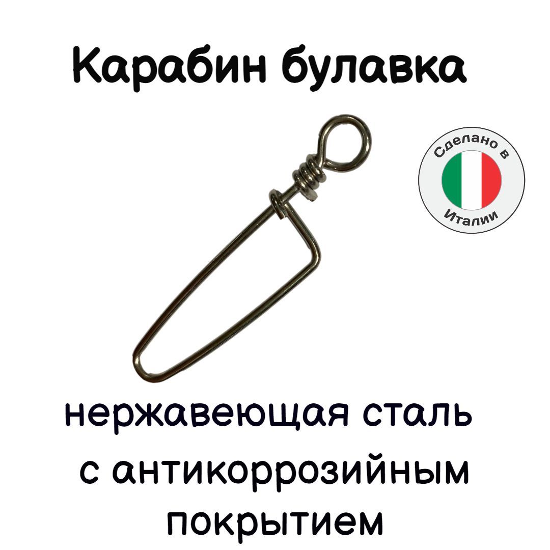 Классический карабин "булавка" из нержавеющей стали для подводной охоты. Данные карабины предназначены для крепления гарпун-линя к катушечному шнуру, для удобного и быстрого извлечения гарпуна из тела рыбы. Также применяется как быстросъемный крепеж различного оборудования к поясу, маркер-бую. Конструкция данного карабина прошла испытание временем. В течение десятилетий его используют подводные охотники всего мира в соленых и пресных водах.