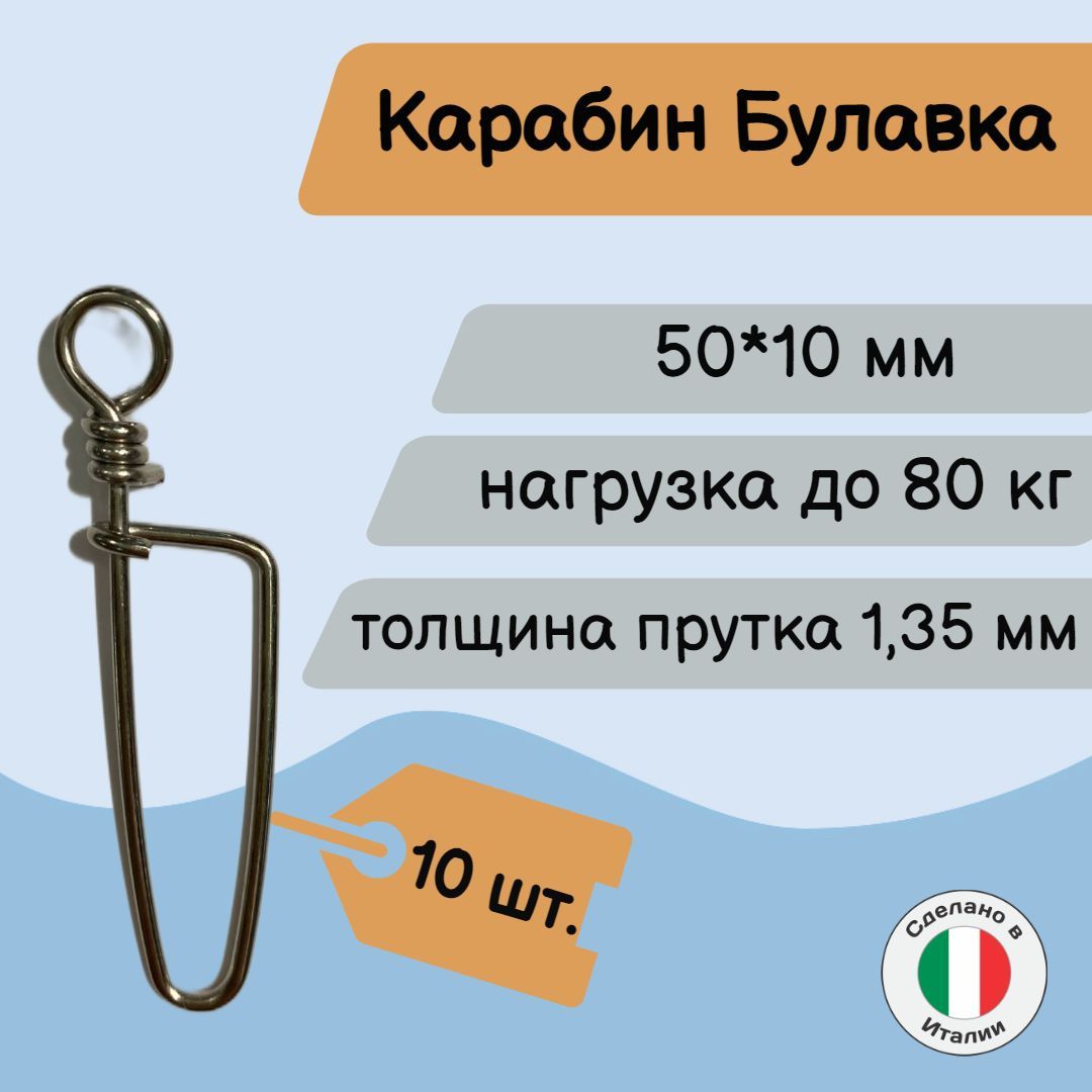 —Карабин для подводного ружья/подводной охоты типа булавка 5 см /10 шт/Narwhal