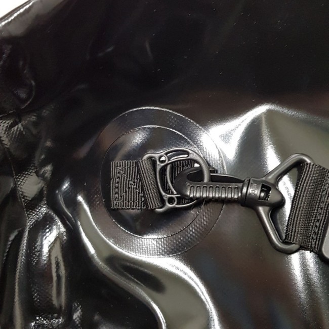 Гермомешок закрывается классической закруткой, которая позволяет легко регулировать вертикальный размер рюкзака в зависимости от степени его наполнения. Для обеспечения герметичности нужно сделать минимум три полных оборота сложенной горловины в горизонтальной плоскости вокруг себя.